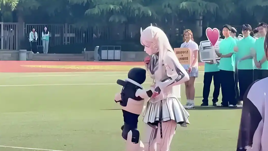 高校演出机器人突然拥抱女生
